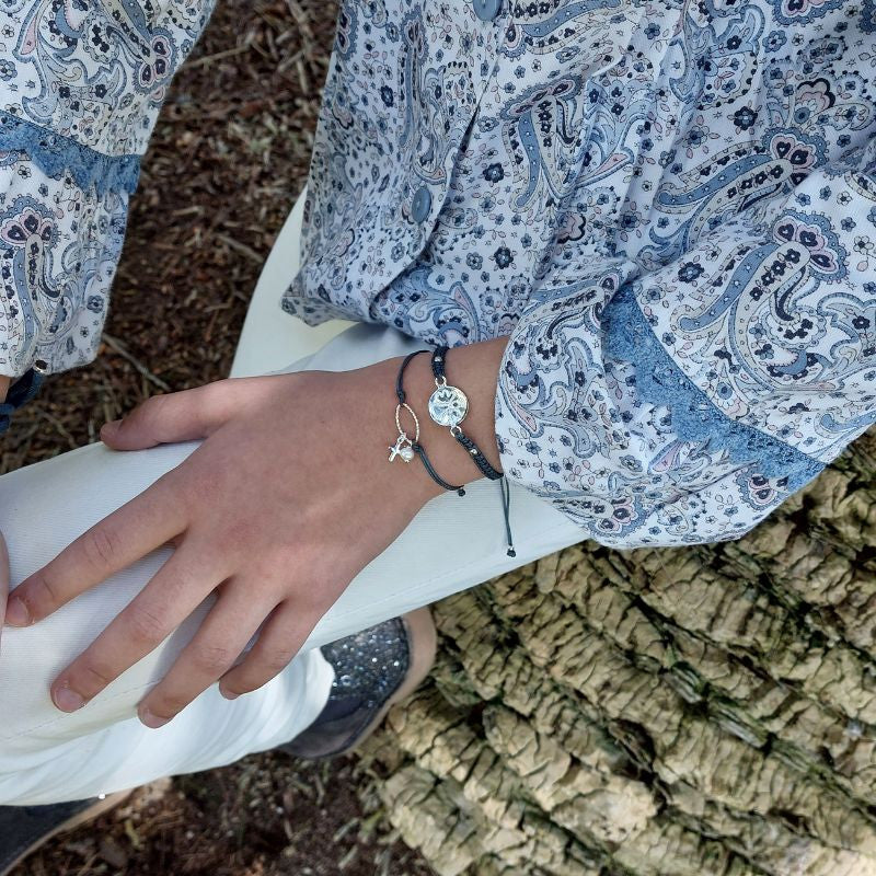 The ANNIE bracelet is elegant and delicate. The silver hoop with the cross and the pearl are the undisputed protagonists of this bracelet. It is very comfortable to put on and wear thanks to the macramé fabric. Adjustable for all wrists.