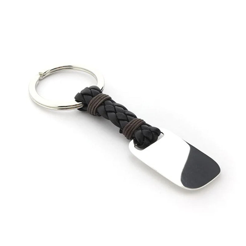 BRUNO is a perfect gift for a personalized keychain with a special engraving that can mean a lot to the person who receives it. The braided leather and its rectangular medal give it that elegant and quality touch.