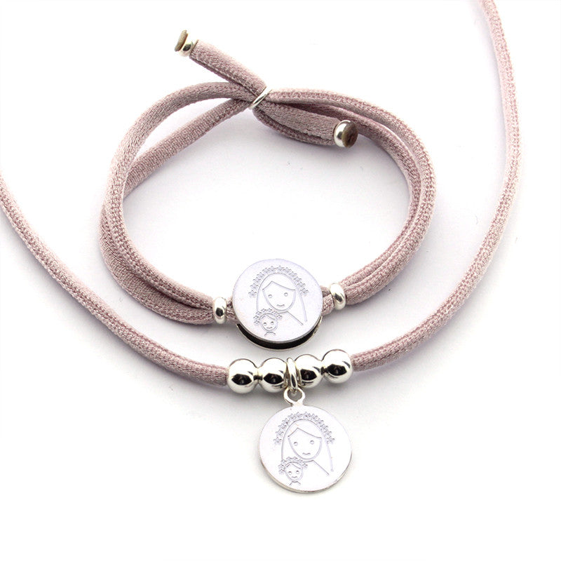 Choose the drawing of the Virgin or the Angel that you like the most and behind the medal (both the necklace and the bracelet) we can engrave the name and/or date of the First Communion. A very special memory of that great day!
