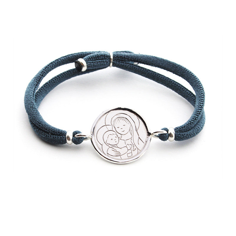 Scapular bracelet mounted on an adjustable elastic band. The medal measures 20 mm, is made of .925 silver with a very sweet and pretty image. If you are looking for a sweet and tender image of the Virgin, this is your necklace.