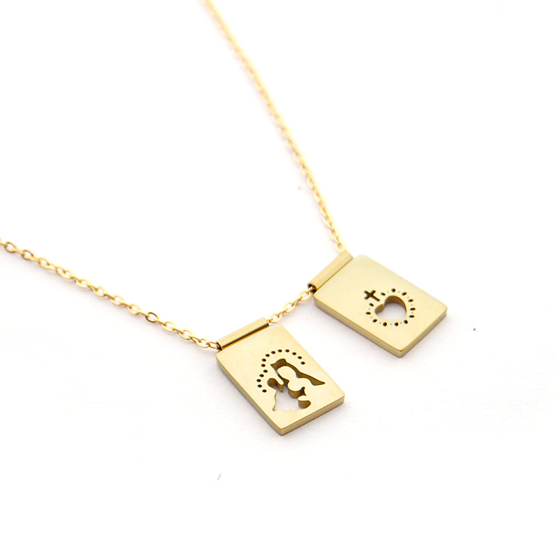 The ALIANZA scapular is a beautiful necklace! The medal is characterized by the very precise details of the Virgin of Carmen and the Sacred Heart. Ideal to combine with other necklaces.