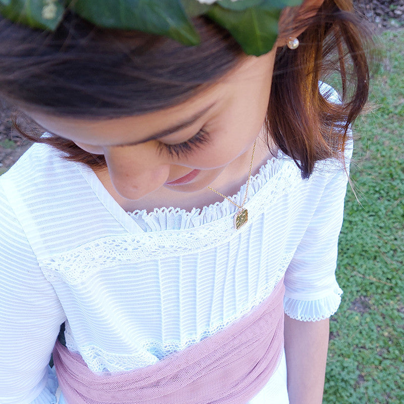 The golden HEART scapular medal stands out for its rustic and sweet designs. The height of the necklace is adjustable thanks to a 4 cm extension on the chain. It is a necklace that you can wear alone or combined with your favorite necklaces.