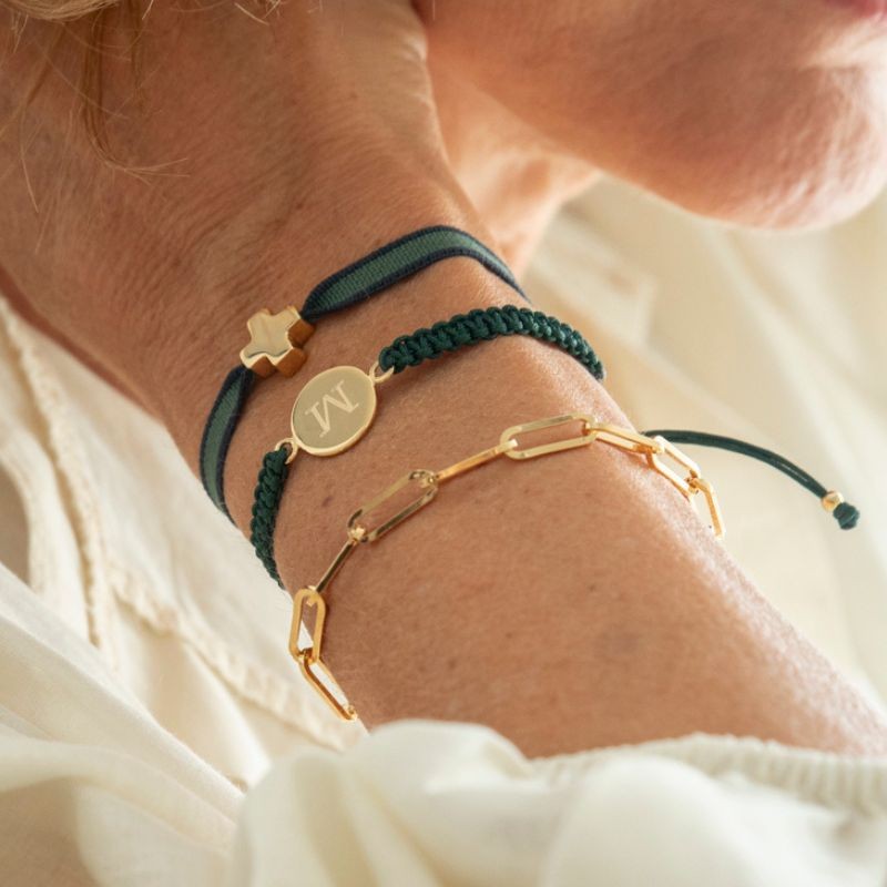 Our Ficus Dor bracelet is an essential basic that will give your look a touch of spontaneity. What makes this piece unique is the possibility of personalizing it with a short name or initial. It is made using the macramé weaving technique and includes two golden beads that make it more eye-catching.