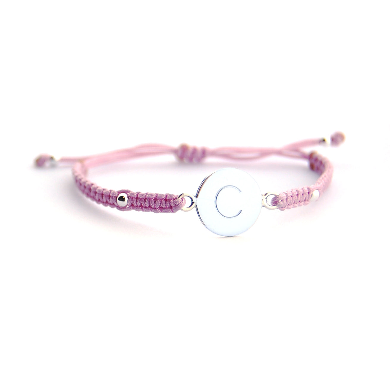 The FICUS bracelet is a very pretty customizable bracelet made using the macramé technique. It combines a 13mm silver medal and two silver beads with the thread that you can choose in the color you like best. You can personalize it with a short name or an initial.