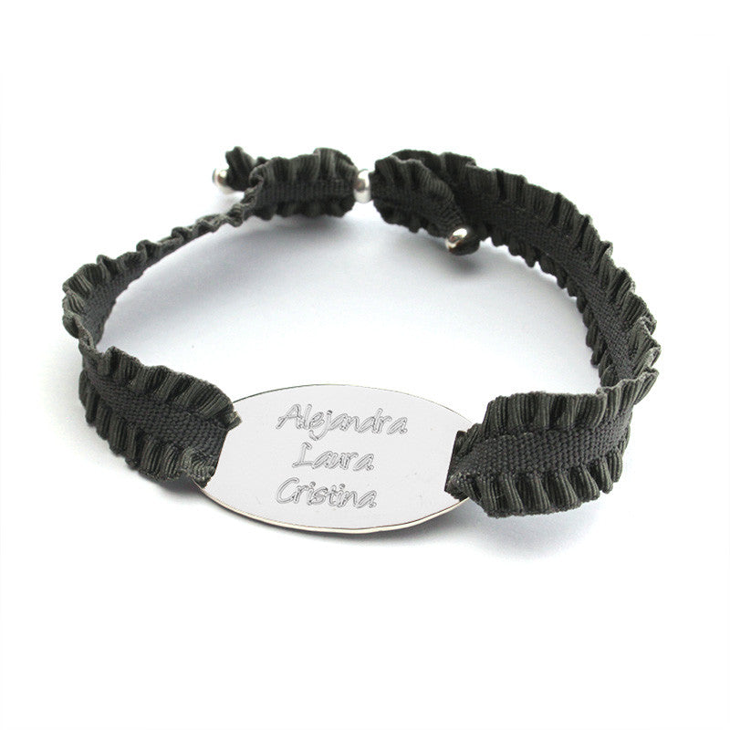 The GERA bracelet is a voluminous oval silver piece that, when assembled with this curly ribbon, makes the perfect bracelet. You can engrave it however you like to give it that personalised touch (up to 5 names can be engraved). It looks beautiful whether you wear it alone or combine it with other bracelets.