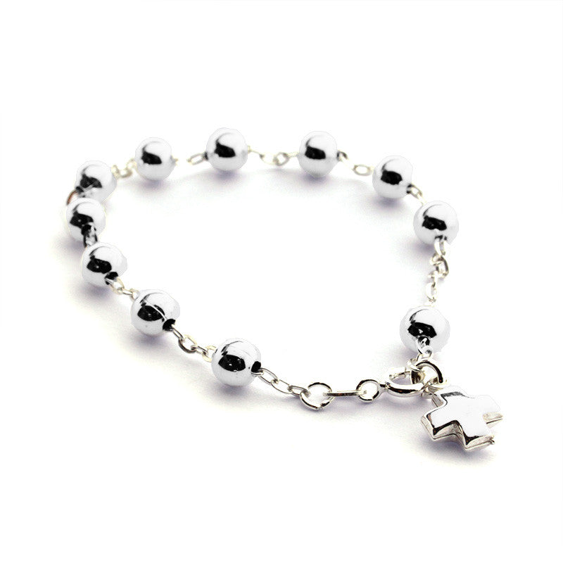 Very comfortable and light rosary bracelet. It is all made of .925 silver and the beads are hollow.