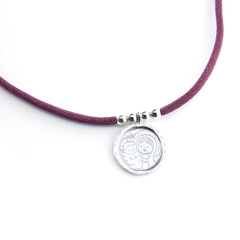 In this case we present a large medal, 17 mm thick, a piece that stands out for its finish and quality, without a doubt, but also for its sweet drawings. On the front there is the Virgin and Child and on the back there is a little angel and space to engrave name and date.