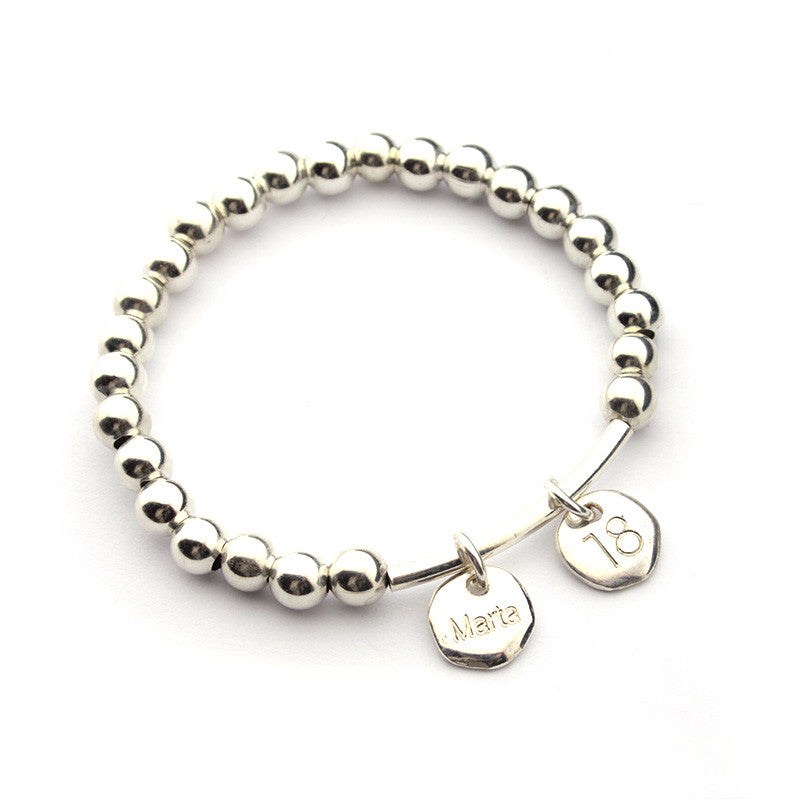 Nuestra pulsera Anita es ideal para regalar a las madres, abuelas... para que lleven siempre sus hijos o nietos. Puedes escoger hasta un total de 6 medallas para colgar de la pulsera. Las puedes personalizar grabando los dibujos que te mostramos en la última foto, con iniciales, nombres, fechas...