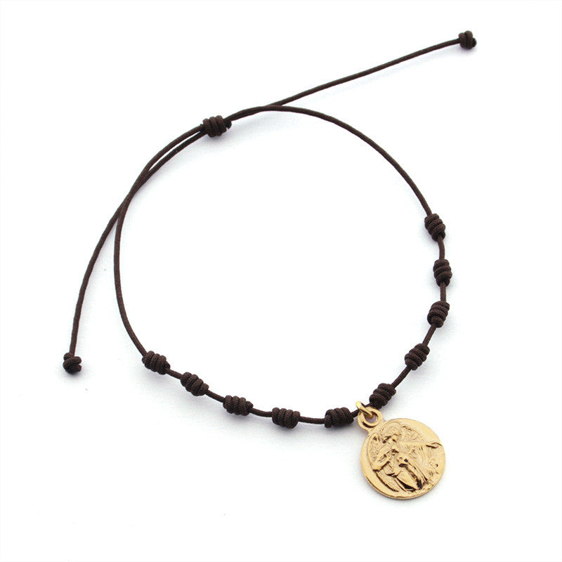 Lleva contigo a tu ángel de la guarda con esta pulsera de diseño muy actual y cómodo. Podrás elegir entre plata y dorado.