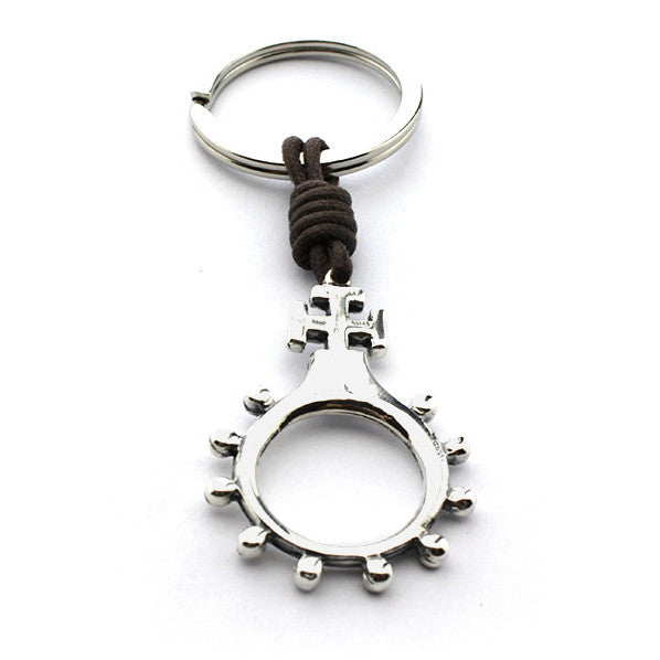 Una forma muy práctica de tener siempre el rosario a mano es llevarlo a modo de llavero. Este modelo de rosario decenario es de plata .925 y tiene un tamaño perfecto para llevar con tus llaves.