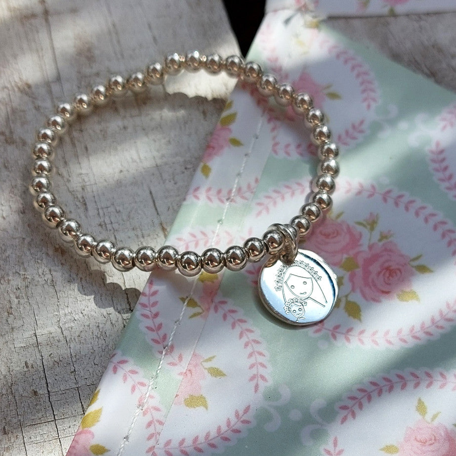 Si quieres un regalo para siempre y que sea un bonito recuerdo de la Primera Comunión, la pulsera modelo G de la colección de Cielito es un éxito asegurado. Es toda de plata, las bolas están pasadas en doble silicona elástica lo que la hace resistente y a la vez muy cómoda.