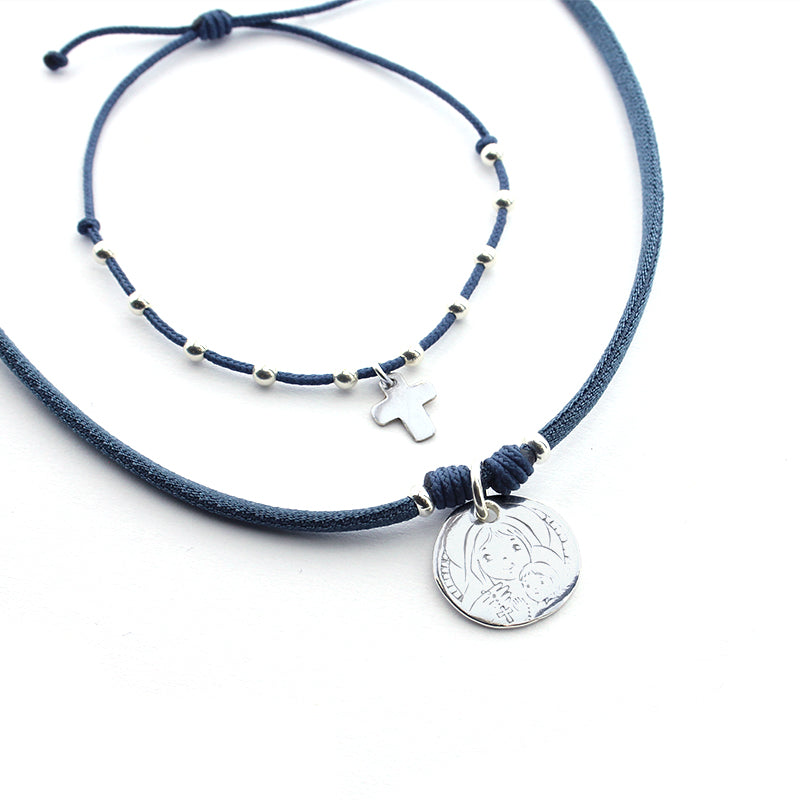 Hemos pensado que al collar de la Virgen del Rosario le queda perfecta una pulsera con las 10 bolitas y la cruz características del Rosario. Un conjunto muy de la Virgen que rinde un homenaje a su oración favorita.