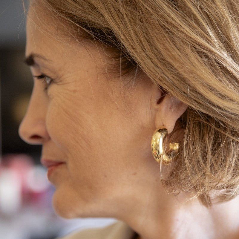 Estos delicados accesorios están diseñados para realzar tu estilo con un toque de sofisticación discreta a tu look de otoño dorado. Su tamaño compacto los hace perfectos para el uso diario, mientras que su diseño audaz en forma de aro gordito añade un toque moderno y de tendencia a cualquier conjunto.