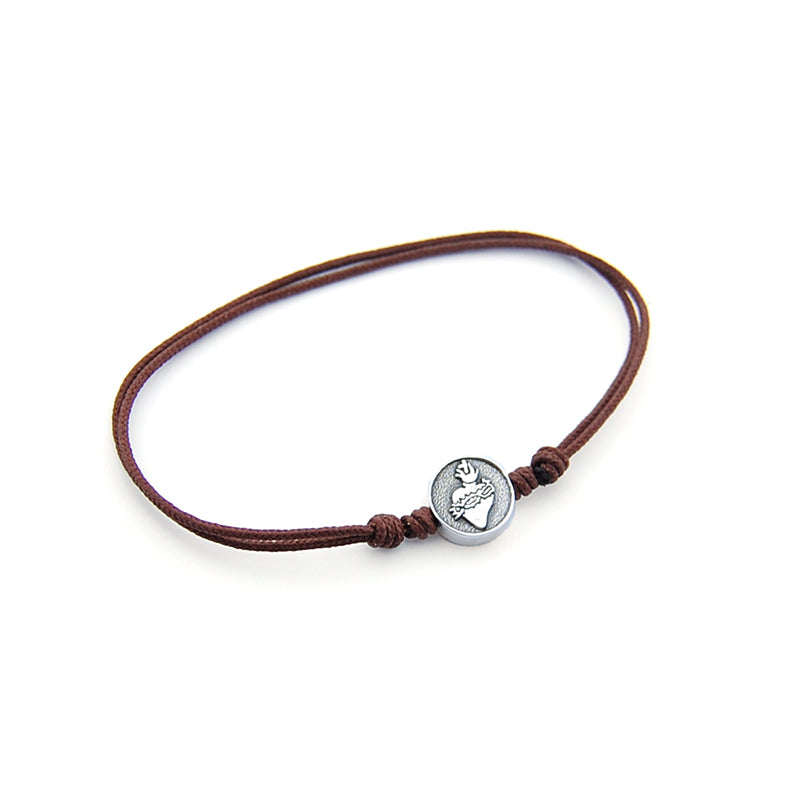 No es necesario que un sacerdote lo bendiga o imponga. No es un escapulario. Detrás lleva grabada la frase: "Detente, el corazón de Jesús está conmigo"