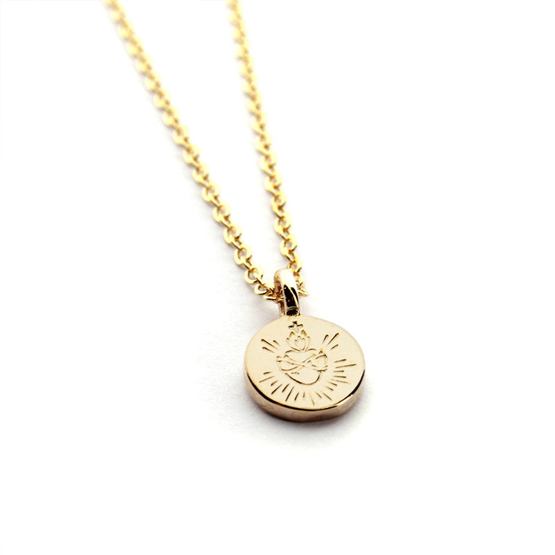 Este collar con la medalla detente mini es muy especial. Lleva contigo al Sagrado Corazón de Jesús de manera moderna y elegante. Podrás llevarlo en distintas alturas gracias al alargo de 4cm de la cadena.