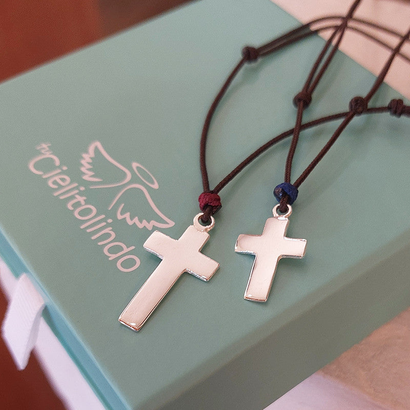 Si te gusta llevar la cruz con un estilo moderno te encantará el collar de la cruz ELÍAS. La cruz se puede personalizar por delante y por detrás.