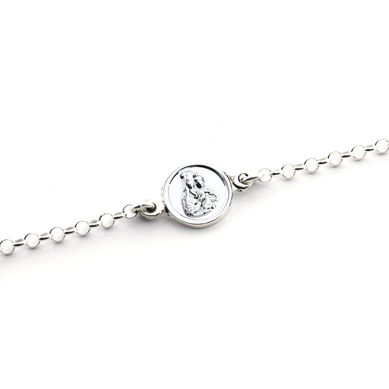 Pulsera escapulario con cadena de plata. Las imágenes son muy bonitas y para todas las edades. Se puede personalizar por el lado de la Virgen grabando iniciales o con una fecha.