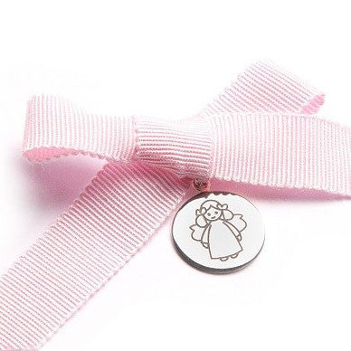 Medalla personalizable de plata .925 que mide 20mm. Muy bonito para que los bebés lo lleven puesto o para el cochecito, la cuna etc. Escoge el dibujo que quieres que grabemos delante de la medalla. En el reverso se puede grabar el nombre y la fecha del bebé.