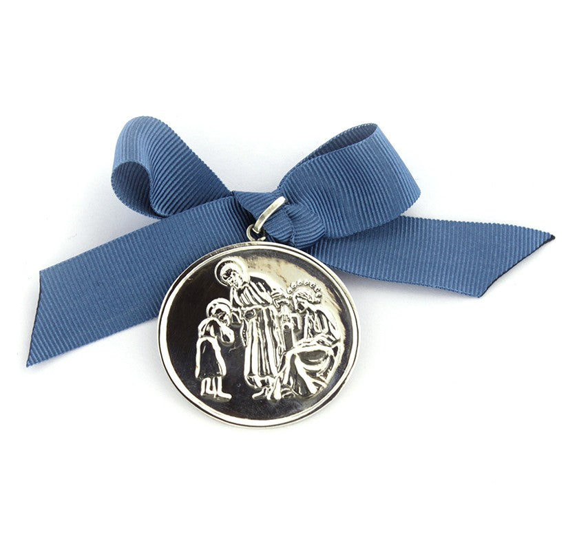 Medalla de plata de la Sagrada Familia. Perfecta para poner en el cochecito, la cuna etc. Que esta medalla nos recuerde una de las cosas más valiosas que tenemos, la familia. Además, esta medalla puedes personalizarla por detrás con una frase muy especial o un nombre y/o fecha . Crea un vínculo familiar para la espera más deseada de vuestro bebé.