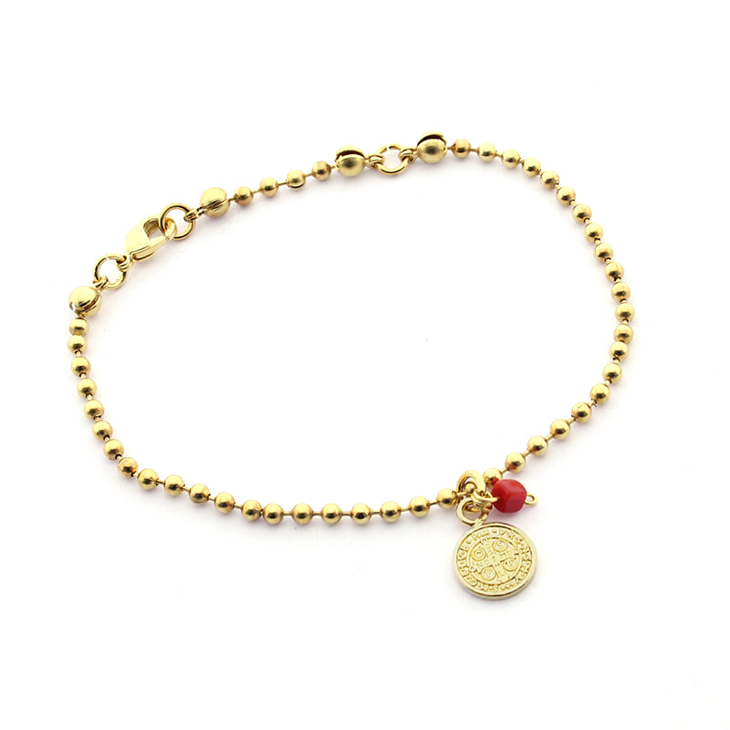 Medallita de San Benito en tamaño mini montado colgada en una pulsera de bolitas. El tamaño de la medallita es de 9mm. Queda muy mona para combinar con otras pulseritas.
