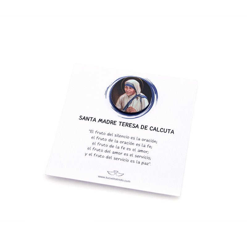 Te presentamos la medalla adhesiva de la Santa Madre Teresa de Calcuta. Este emblema es un adhesivo para que puedas ponerlo en tu teléfono móvil, en el coche, ordenador o dónde te apetezca. Viene presentado con la estampa y la oración de la Santa Madre Teresa de Calcuta