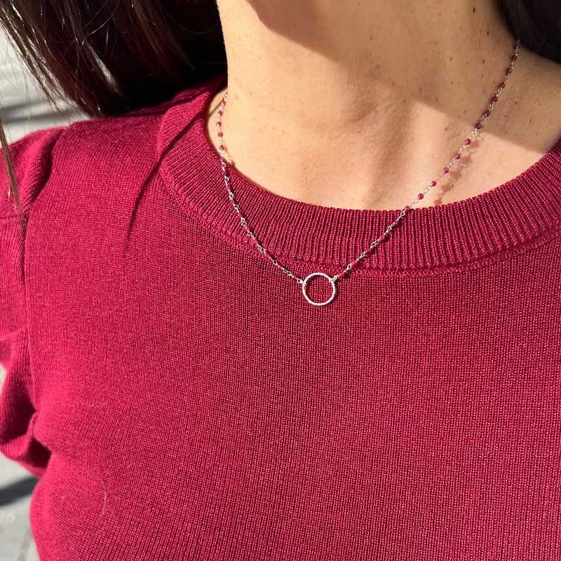 ULA es un collar muy fino y elegante pero que resaltará en tu cuello por su aro y piedras naturales.
