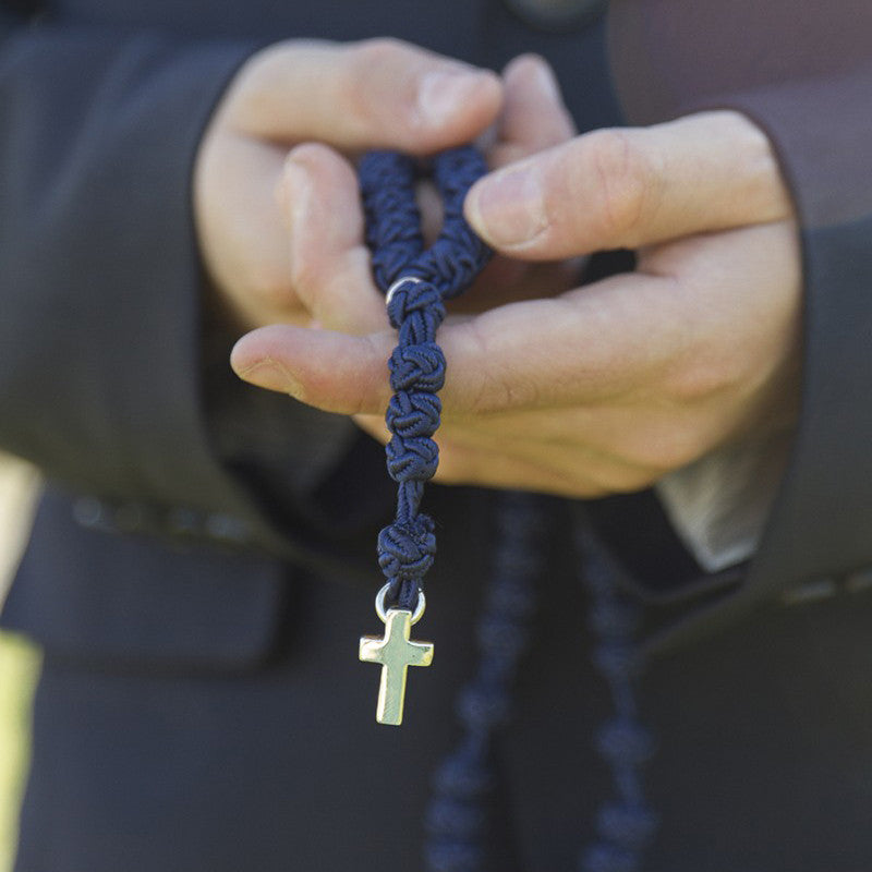 Un rosario con cruz personalizable y nudos. La cruz para hacerlo todavía más especial. Hecho 100% a mano, nudos tejidos uno a uno en hilo de alta calidad.
