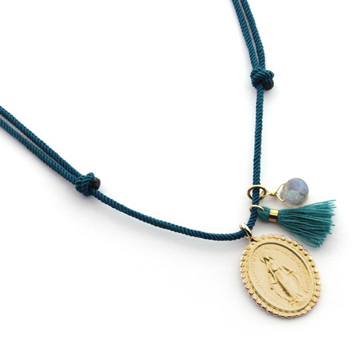 Si tienes mucha devoción a la VIRGEN DE LA MILAGROSA te gustará mucho este collar en dorado. Es un diseño con mucho estilo que viene acompañado de un pompón y una piedra natural que le dará brillo a cualquier atuendo. Es el regalo perfecto para cualquier ocasión.